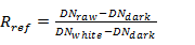 式中,Rref 是校正過的圖像,DNraw 是原始圖像,DNwhite為白板校正圖像,DNdark 是黑板校正圖像。