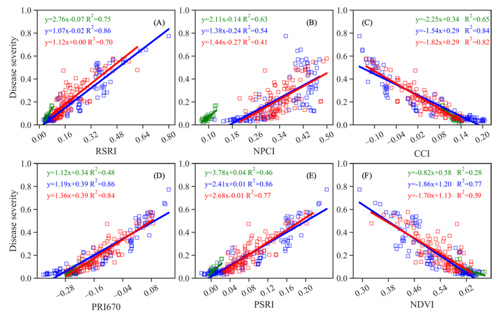 本研究表明,RSRI可以作為一種新的指標(biāo)用于水稻穗腐病的全生育期監(jiān)測,在育種和作物保護(hù)中有很好的應(yīng)用前景,并且不用考慮穗的成熟效應(yīng)。