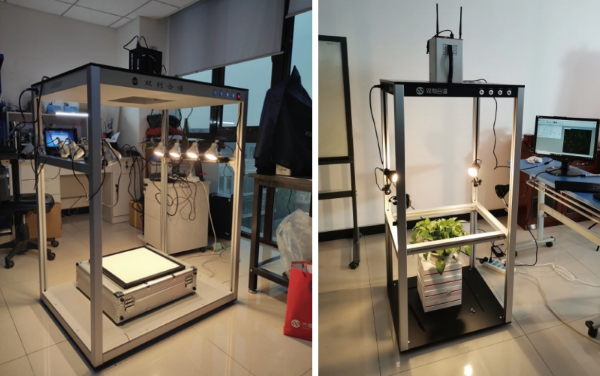 測(cè)試植物表型、絕緣體材料、大面積煙草煙葉等體積較大的目標(biāo)時(shí),標(biāo)準(zhǔn)的暗箱無(wú)法滿足應(yīng)用,為此設(shè)計(jì)定制版本的平臺(tái)來(lái)滿足用戶的實(shí)際需求。簡(jiǎn)易平臺(tái)可以搭載“ image-λ”系列的高光譜相機(jī)并配合不同尺寸的精密電控平臺(tái)來(lái)實(shí)現(xiàn)高光譜數(shù)據(jù)影像的獲取,也可以兼容 “GaiaField”系列高光譜相機(jī),利用 GF 內(nèi)置推掃結(jié)構(gòu)或與外置電控平臺(tái)分別實(shí)現(xiàn)掃描成像的應(yīng)用 ( 分別對(duì)應(yīng) :相機(jī)移動(dòng)、樣品移動(dòng) )。為用戶提供了“一機(jī)多用”的開(kāi)放式平臺(tái),節(jié)約了成本,提升了效率。