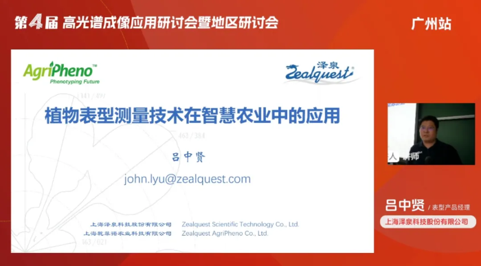 上海澤泉科技股份有限公司表型產(chǎn)品經(jīng)理呂中賢為大家?guī)怼吨参锉硇蜏y量技術在智慧農(nóng)業(yè)中的應用》的報告。報告主要從不同維度介紹植物表型測量技術在智慧農(nóng)業(yè)中的應用。報告從實驗室尺度、溫室尺度、田間尺度完整介紹了不同的表型測量技術原理以及應用。設備涵蓋實驗室表型測量技術、溫室傳送型表型測量技術、溫室軌道式表型測量技術、田間軌道式表型測量技術、田間物聯(lián)網(wǎng)分布式表型測量技術、機器人表型測量技術等,為相關科研工作者提供一套完整的植物表型測量解決方案。