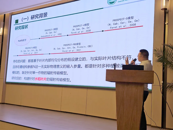 沈陽農(nóng)業(yè)大學(xué)教授于豐華為大家?guī)怼痘诠鈱W(xué)特性分層與真實結(jié)構(gòu)的水稻葉片輻射傳輸模型構(gòu)建》的報告。報告針對目前以PROSPECT模型為主流的輻射傳輸模型大都基于葉片內(nèi)部是渾濁均質(zhì)的假設(shè),忽略了葉片內(nèi)部真實結(jié)構(gòu)對葉片光譜的影響,且存在結(jié)構(gòu)參數(shù)(N)這一無法實測的參數(shù),限制了輻射傳輸模型對光與植被相互作用機(jī)制的解釋能力。本研究提出葉片內(nèi)部非均質(zhì)分布的假設(shè),構(gòu)建了包含兩層光學(xué)特性層的PIOSL模型,通過對公開數(shù)據(jù)集的植物葉片進(jìn)行光譜模擬,驗證了PIOSL模型在模擬反射率方面的優(yōu)越性,也進(jìn)一步說明了葉片內(nèi)部具有一定的分層結(jié)構(gòu)。為了探究N與水稻葉片真實解剖結(jié)構(gòu)之間的關(guān)系,本研究通過eLeaf模型建立了葉片解剖特征與光譜特征之間的關(guān)系,通過可測量的葉片解剖參數(shù)替換PROSPECT模型中的N,開發(fā)了RSPECT模型。RSPECT模型的提出為其他植被類型的輻射傳輸模型改進(jìn)提供了新的框架。