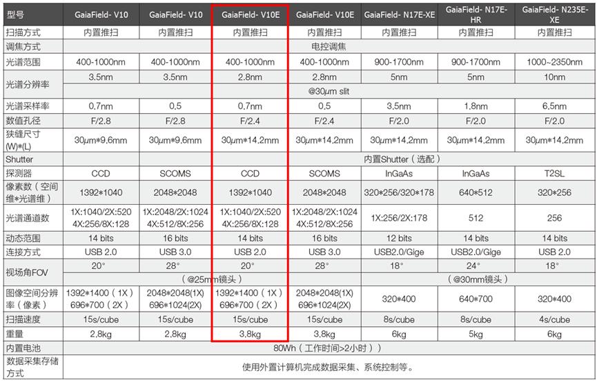 本文采用的高光譜設備具體參數(shù)如圖8所示。
